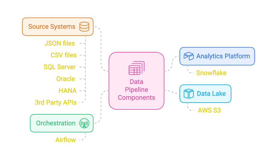 Pfizer’s data integration process involved numerous systems—Oracle, SQL Server, HANA, and JSON files—all feeding into Snowflake. This complex path frequently led to data inconsistencies and data quality issues. Manual reconciliation and quality checks couldn’t keep up, making it hard to spot problems before they affected business operations.