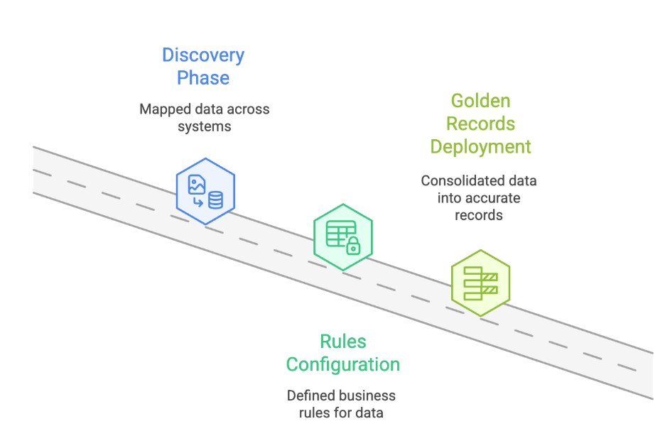 These fragmented and inconsistent data records created operational inefficiencies, compliance risks, and millions of dollars in lost revenue opportunities. Teams often discovered data issues too late to act without delays or inaccuracies. It was clear that a unified, scalable approach to Master Data Management was required.