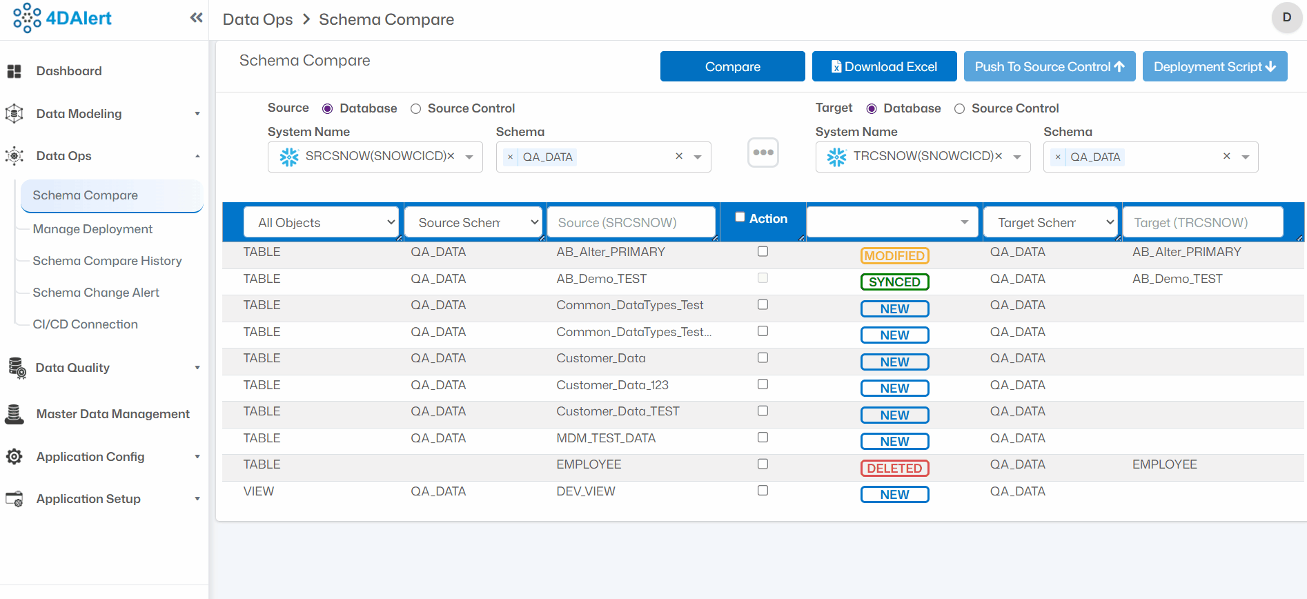 4DAlert transforms schema management and deployment processes through advanced automation. It efficiently tracks, compares, and synchronizes database schemas across environments while automating change deployment with high precision. By leveraging intelligent algorithms and integrating seamlessly with source control tools like GitHub and Azure DevOps, 4DAlert eliminates manual efforts, ensuring consistency, integrity, and error-free deployments across your database ecosystems.