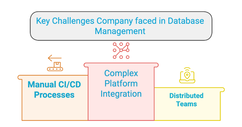 Manual CI/CD Processes: The company’s manual approach to CI/CD and database change management was slow and error-prone, complicating agile development workflows efforts and leading to delays.